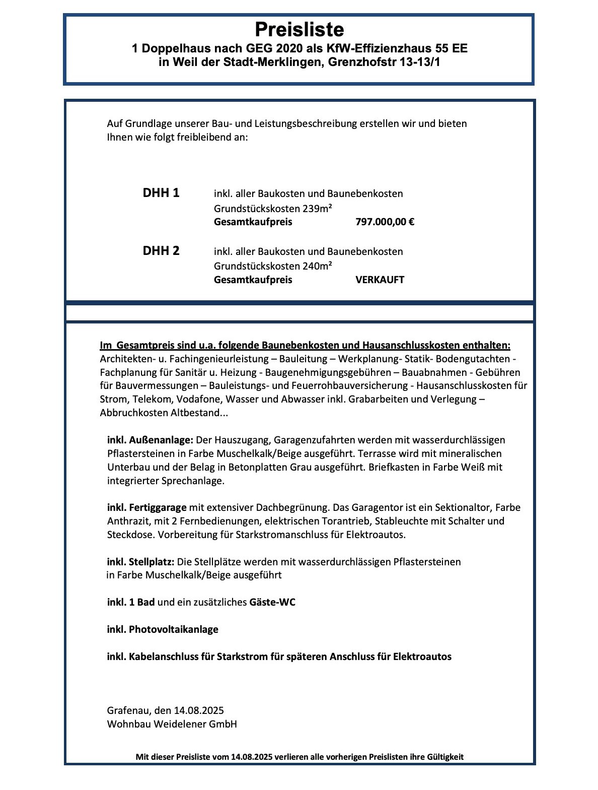 Das Grundstück liegt in einem beliebten Teil von Weil der Stadt-Merklingen. Dort wurde bereits ein Einfamilienhaus errichtet und erfolgreich übergeben und im April 2025 wurde mit dem Bau von einem großzügigen Doppelhaus begonnen. Beginn